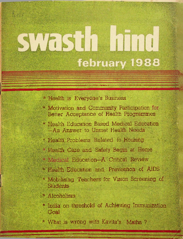 Swaslh Hind ' (Healthy India) is a- monthly—-journal *—Dr AJG